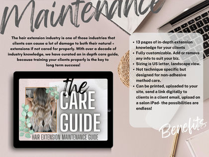Includes: pricing guides, payment structure, payment plans, PDF HairBible/maintenance guides, marketing material and hacks to growing a successful extension sector in your salon)